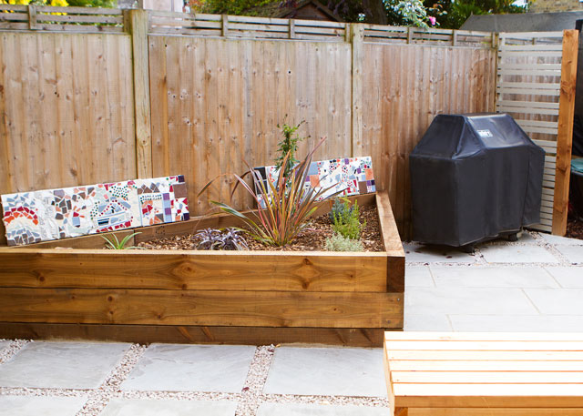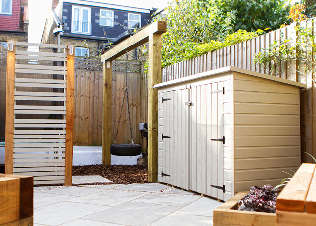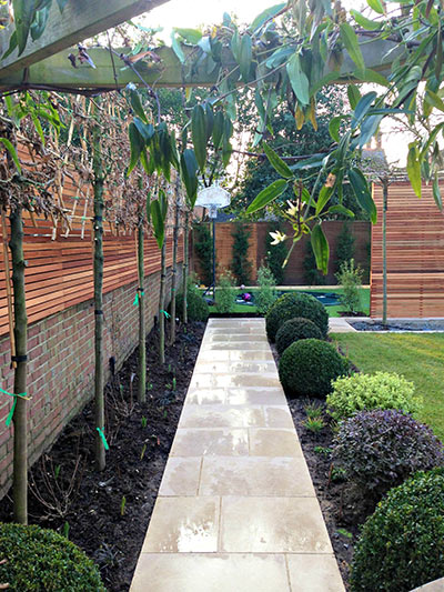 Diagonal, low maintenance family garden, St. Margarets
